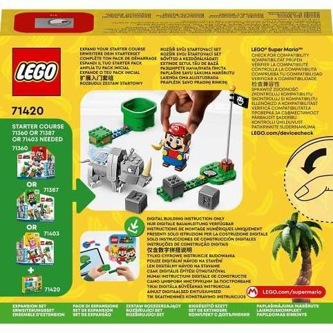 Připravte se na dobrodružství s rozšiřujícím setem LEGO® Super Mario™ (71420) Nosorožec Rambi – rozšiřující set pro děti od 7 let. Obsahuje figurku Rambiho z kostek LEGO®, na které mohou jezdit interaktivní figurky LEGO® Mario™, LEGO® Luigi™ nebo LEGO® Pe