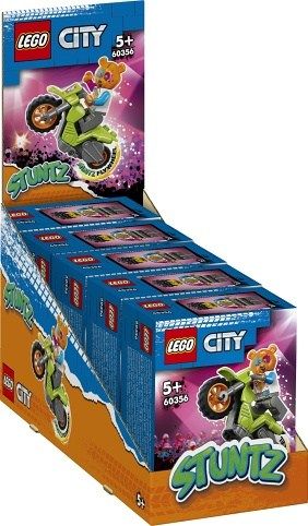 • Model kaskadérské motorky – Uveďte děti od 5 let do světa stavebnic LEGO® City Stuntz s touto motorkou se setrvačníkem • Co se ukrývá v krabici? – Model kaskadérské motorky a zábavná minifigurka jezdce LEGO® City Stuntz s medvědí helmou • Skutečná kaskadérská akce – Kaskadérskou motorku stačí natáhnout, čímž děti aktivují setrvačník, a pak ji vyslat provádět zábavné skoky a triky • Zábavný dárek – Darujte stavebnici Medvěd a kaskadérská motorka (60356) od LEGO® City k Vánocům, narozeninám nebo jakékoli jiné příležitosti dětem od 5 let, které si potrpí na akční modely • Kapesní velikost – Medvědí kaskadérská motorka měří po sestavení přes 5 cm na výšku, 6 cm na délku a méně než 2 cm na šířku • Sběratelské stavebnice, které lze vzájemně kombinovat – Spojte tento model s dalšími z řady LEGO® City Stuntz a užijte si ještě větší porci vzrušujícího dobrodružství a kaskadérských kousků • Samozřejmostí je tištěný a digitální návod na stavění – Díky aplikaci LEGO® Builder s návody na stavění pro chytré telefony a tablety si děti mohou model kaskadérské motorky přibližovat, otáčet a prohlížet ze všech úhlů • Učení hravou formou – Stavebnice LEGO® City obsahují realistické budovy, vozidla a postavy, které podněcují děti k nápaditému hraní a pomáhají jim s rozvojem kreativních dovedností a sebevědomí • Záruka kvality – Už od roku 1958 splňují všechny kostky LEGO® nekompromisní oborové standardy, díky čemuž jsou konzistentní, kompatibilní a zaručují zábavné hraní • Bezpečnost na prvním místě – Dílky LEGO® pouštíme na zem, zahříváme, drtíme, kroutíme a analyzujeme, abychom zajistili, že splňují přísné globální bezpečnostní normy