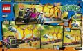 Připravte se na výzvu LEGO® City s ohnivými kruhy! Pomozte najet s obřím tahačem na místo a přichystejte ohnivé kruhy pro první pokus. Nasaďte si přilbu a rozjeďte motorku se setrvačníkem. Najeďte ve vysoké rychlosti na rampu a proskočte jedním… dvěma… třemi ohnivými kruhy! Zvyšte vzdálenost mezi ohnivými kruhy a připravte ještě větší výzvu. Jak daleko dokáže kaskadérská motorka doletět? To zjistíte sami!