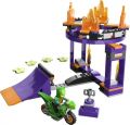 Přesuňte se ke Kaskadérské výzvě s rampou a obručí a staňte se svědky úchvatných kaskadérských výkonů! Připravte obruč vodorovně, nastartujte motorku se setrvačníkem a rychle vyrazte na startovací rampu a proveďte „smeč“. Pokud chcete dosáhnout ještě vyššího skóre, uhaste při tom oheň z LEGO® dílků. Připravte pak obruč svisle a přichystejte se na skutečnou kaskadérskou akci!