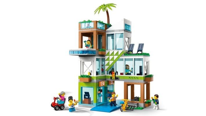 • Přestavitelná stavebnice bytového komplexu – Sada LEGO® City Bytový komplex (60365) obsahuje kombinovatelné modulární pokoje a zábavné stavebnice a je vhodná pro děti, které milují realistické hraní • Co najdete v krabici? – Ve stavebnici bytového komplexu s modely solárních panelů nechybí ani obchod s potravinami, obývací pokoj, kuchyně, ložnice, koupelna, kolo, elektrický vozík a 6 minifigurek • Rozšiřitelná stavebnice – Obsahuje LEGO® Křižovatku, pomocí níž můžete stavebnici spojovat s dalšími z řady LEGO City • Posuňte dárky na další úroveň – Tato modulární stavebnice bytového komplexu je zábavným dárkem pro děti od 6 let k narozeninám, Vánocům nebo jakékoli jiné příležitosti • Rozměry – Po sestavení měří Bytový komplex přes 34 cm na výšku, 21 cm na šířku a 20 cm do hloubky • Součástí jsou doplňky pro minifigurky LEGO® – V této sadě nechybí model lahve s džusem, párek v rohlíku, telefon, činky, kolo a elektrický vozík • Nechybí interaktivní návod – Objevte intuitivní aplikaci LEGO® Builder. Umožní dětem přibližovat a otáčet modely ve 3D, sledovat postup stavění a prozkoumávat a ukládat virtuální stavebnice • Město nekonečných možností – Spojte tuto stavebnici s ostatními modely z řady LEGO® City a zažijte ještě více zábavných dobrodružství • Hračky, na které se můžete spolehnout – Již od roku 1958 splňují všechny kostky LEGO® nekompromisní oborové standardy, díky čemuž jsou dílky konzistentní, kompatibilní a zaručují zábavné hraní • Maximálně přísné testy – Kostky a dílky LEGO® pouštíme na zem, zahříváme, drtíme, kroutíme a analyzujeme, abychom zajistili, že splňují striktní globální bezpečnostní standardy