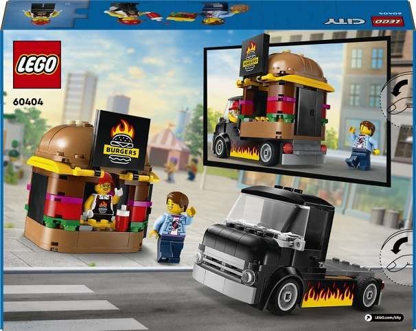 • Stavebnice jídelního trucku – Se sadou LEGO® City Hamburgerový truck pro děti od 5 let je servírování fast foodu přímo hračka• Co najdete v krabici? – Součástí je vše, co děti potřebují k sestavení modelu hamburgerového trucku, minifigurka prodejce a zákazníka s naslouchátkem a řada doplňků LEGO® v podobě omáček a dochucovadel• Stavebnice pro děti s bohatou fantazií – Zvedněte dvířka a odhalte ceduli s hamburgerem grilovaným na ohni. Odejměte střechu a pusťte se do servírování jídla• Poutavá stavebnice s interaktivním návodem – Objevte intuitivní aplikaci LEGO® Builder, která dětem umožní přibližovat a otáčet modely ve 3D, sledovat postup stavění a prozkoumávat a ukládat virtuální stavebnice• Zábavný dárek k jakékoli příležitosti – Tato stavebnice představuje skvělý dárek k Vánocům nebo jakékoli jiné příležitosti pro děti od 5 let• Svět nápaditého hraní – Spojte tuto stavebnici s ostatními modely z řady LEGO® City (prodávají se samostatně) a zažijte ještě více zábavných dobrodružství• Město nekonečných možností – LEGO® City je místo, kde děti mohou tvořit budovy, vozidla a postavičky bez omezení a kde se mohou těšit na hodiny stavění, objevování a hraní• Rozměry – Hamburgerový truck se skládá ze 194 dílků a se zvednutou cedulí měří přes 10 cm na výšku, 12 cm na délku a 7 cm na šířku