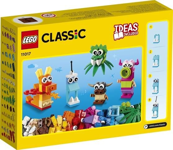 • Kreativní hraní – stavebnice LEGO® Classic Kreativní příšery (11017) nabízí hodiny zábavného hraní, které si společně mohou vychutnat děti od 4 let s kamarády nebo ostatními členy rodiny • Co najdete uvnitř krabice? – Všechno potřebné k sestavení 5 příšerek a další kostky LEGO® navíc pro vlastní originální výtvory • Inspirativní modely, které nakopnou dětskou představivost – děti si mohou postavit navržené modely a pak objevovat a zkoušet nápadité způsoby, jak stavět vlastní zábavné výtvory z kostek LEGO®. • Ideální dárek – stavebnice představuje skvělý dárek k narozeninám, Vánocům či jakékoliv jiné příležitosti pro nezkušené stavitele LEGO® i děti, které by si přály rozšířit svou sbírku kostek LEGO • Záplava barevných kostek LEGO® – s touto originální stavebnicí LEGO se 140 dílky si děti mohou postavit, cokoliv je napadne • Více dílků znamená více možností při hraní – pro ještě větší porci zábavy mohou děti stavebnici spojit s dalšími sadami z řady LEGO® Classic • Jednoduchý obrázkový návod – ke každému z 5 mini modelů je k dispozici samostatný obrázkový návod na stavění krok za krokem, takže radost ze sestavení vlastních hraček si budou moci vychutnat i stavitelé, pro které jsou kostky LEGO® novinkou • Učení hrou – stavebnice LEGO® Classic pomáhají u dětí rozvíjet klíčové dovednosti, které se jim budou v životě hodit • Vysoce kvalitní kreativní hračky pro děti – už od roku 1958 splňují všechny kostky LEGO® přísné oborové standardy, díky čemuž jsou konzistentní, kompatibilní a zaručují zábavné hraní • Navrženo s důrazem na bezpečnost – stavebnice LEGO® procházejí důkladnými testy, takže si můžete být jistí, že každý výrobek splňuje přísné bezpečnostní normy