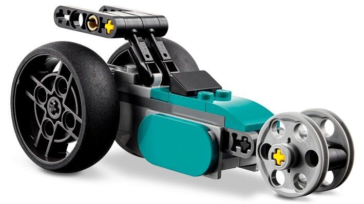 Připravte se na vzrušující akci se 3 různými vozidly. Naskočte na retro motorku a prohánějte se krajinou. Přestavějte ji na pouliční motorku a prozkoumejte město nebo si postavte dragster s výkonným motorem a koly a vydejte se na závodní dráhu! S touto úžasnou stavebnicí 3 v 1 akce nikdy nekončí.