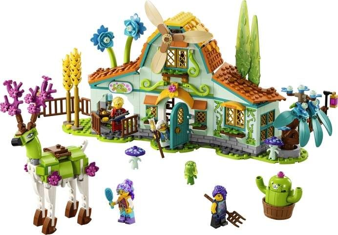 • Prozkoumejte stáj – Stavebnice LEGO® DREAMZzz™ (71459) Stáj snových stvoření je založena na příběhu z televizního seriálu a vytváří pro děti prostor k nápaditému hraní • Plno detailů – Děti prozkoumají funkční větrný mlýn, posečou pšenici a vyzkoušejí otevírací vrata a okna stodoly • Pohyblivá figurka – Jelen má pohyblivou hlavu a nohy, takže ho děti snadno přizpůsobí různým scénám z příběhu • 2 varianty stavění – Děti mají na výběr mezi ozdobením jelena jako létajícího pegase nebo ochránce lesa a vydají se tak na své vlastní dobrodružství s dvojnásobnou dobou hraní • 4 minifigurky – Součástí jsou propracované minifigurky Izzie, Zoey, Coopera a paní Castillové a také Z-Fleka a 2 houbiček ze Světa snů • Hodiny zábavy – Tato stavebnice je navržena pro děti od 8 let, které baví trávit hodiny stavěním samostatně nebo s kamarády • Rozměry – Stáj měří přes 18 cm na výšku, 47 cm na šířku a 12 cm do hloubky • Návod na stavění vedený příběhem – Stavebnice obsahuje návod na stavění vedený příběhem, který je také k dispozici v digitální verzi v aplikaci LEGO® Builder • Prémiové kostky LEGO® jsou navrženy tak, aby šly vždy snadno spojovat • Bezpečnost zajištěna – Kostky LEGO® jsou důkladně testovány, aby splňovaly přísné bezpečnostní standardy