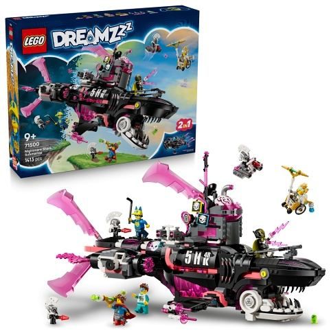 Děti se ponoří do Světa snů se stavebnicí LEGO® DREAMZzz™ (71500) Žraločkoponorka z nočních můr pro kluky a holky od 9 let. Tato fantastická stavebnice plná parádních detailů umožňuje fanouškům vychutnat si velkolepá dobrodružství pod mořskou hladinou po boku Matea, Logana a Astrid. Malí snílci si postaví model žraloka a pak ho promění na žraločkoponorku nebo bitevní loď se žraloky kladivouny. Mezi detaily stavebnice patří odnímatelná miniaturní letadla, vystřelovače, rakety, které lze vystřelit ze žraločí tlamy, otevírací kokpit a vězení uvnitř žraloka. Součástí jsou také modulární vystřelovače kompatibilní s dalšími stavebnicemi z řady LEGO DREAMZzz 2025 (prodávají se samostatně). Minifigurky Matea, Logana, Astrid, Rozbíječe snů, snílků a figurky Z-Fleka a 3 Kybervěcí vdechnou stavebnici život a podnítí kreativní hraní. Součástí napínavé stavebnice je návod na stavění vedený příběhem, se kterým se děti ponoří do dobrodružství ve Světě snů a stanou se hrdiny.
