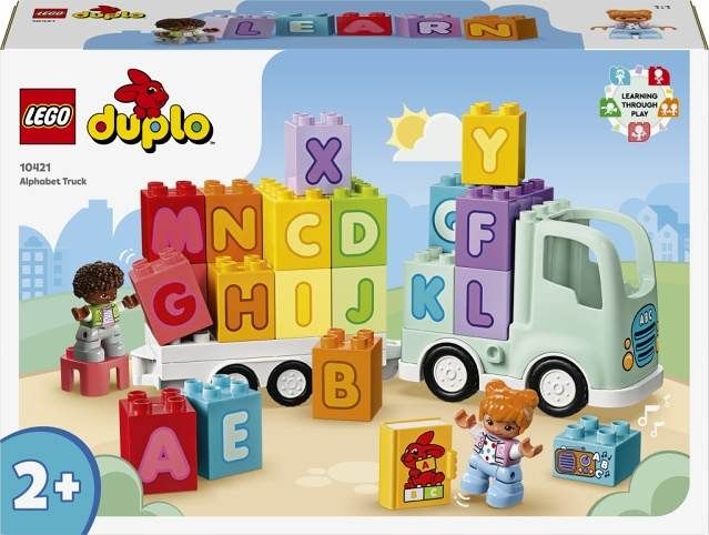 • Stavebnice, která děti naučí písmenka – Nasedněte do Náklaďáku s abecedou z řady LEGO® DUPLO® Město a připravte se na hraní plné zábavného učení abecedy pro malé stavitele od 2 let• Stavebnice pro batolata – Součástí je pojízdný náklaďák s odpojitelným přívěsem, 2 figurky LEGO® DUPLO® a 26 kostek s písmenky• Přestavitelná hračka pro kreativní zábavu – Malé děti si vyzkouší třídění kostek podle barev, skládání slov z kostek s písmenky a pak se vydají na projížďku v náklaďáku• Nápadité doplňky – Součástí je stereo LEGO® DUPLO®, které batolata povzbudí k recitaci abecedy, a knížka, s níž si děti procvičí čtení písmen• Nápad na dárek pro děti od 2 let – Tato vzdělávací hračka představuje ideální dárek pro batolata, která mají ráda auta a učí se rozpoznávat písmena• Bezpečné hraní – Kostky a dílky z této stavebnice LEGO® DUPLO® s náklaďákem pouštíme na zem, drtíme, kroutíme, zahříváme a analyzujeme, abychom zajistili, že splňují přísné normy týkající se bezpečnosti dětí• Vzdělávací hračky pro batolata – Stavebnice LEGO® DUPLO® pro malé děti přinášejí rozmanité postavy a známé prvky, které vedou děti k učení hrou• Zábava pro malé ručičky – Stavebnice obsahuje 36 dílků a součástí je náklaďák, který měří přes 11 cm na výšku, 14 cm nadélku a 7 cm na šířku