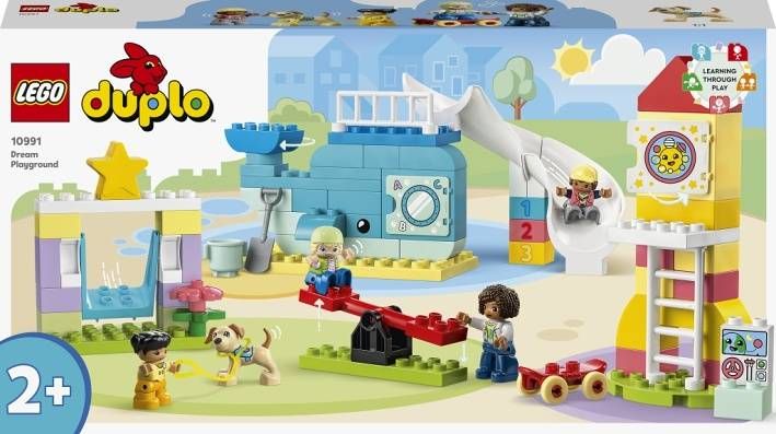 • Hodiny zábavy na hřišti – Všestranná hračka LEGO® DUPLO® Město (10991) Hřiště snů inspiruje k přehrávání bezpočtu příběhů a podněcuje fyzický a mentální vývoj • Rozvoj sociálních dovedností – Tato hračka se spoustou funkcí obsahuje 5 figurek včetně skejťáka a vodicího psa, se kterými se děti mohou spřátelit při přehrávání situací z moderního života • Aktivity vhodné pro malé děti – Děti vylezou na raketu, zatočí se na kolotoči u velrybího ocasu a poté sjedou po skluzavce a hurá na houpačku. Nebo si můžou najít parťáka nebo parťačku na převažující houpačku. • Učení na základě hry – Při prozkoumávání moderního vybavení na hraní se malé děti naučí písmenka a čísla a rozvinou své motorické schopnosti i sebevyjádření • Dárek pro malé děti – Darujte dětem od 2 let tvůrčí venkovní stavebnici k narozeninám, Vánocům nebo jako překvapení při jiné příležitosti • Rozměry – Konstrukce velryby se skluzavkou měří přes 16 cm na výšku, 34 cm na šířku a 17 cm do hloubky. Houpačka měří přes 16 cm na výšku, 14 cm na šířku • Digitální návod na stavění – Aplikace LEGO® Builder obsahuje digitální verzi návodu na stavění, který je součástí stavebnice • Hračky pro nejmenší pomáhají učit se hrou – Stavebnice LEGO® DUPLO® byly odborně navrženy tak, aby při kreativním hraní rozvíjely odolnost, sebedůvěru a představivost • Konzistentní kvalita – Hračky LEGO® DUPLO® splňují přísné oborové standardy, takže si můžete být jisti, že je pro malé ručky snadné kostky uchopit, umístit a rozpojit – a je tomu tak již od roku 1969 • Vždy bezpečné – Kostky a dílky LEGO® DUPLO® jsou testovány maximálním možným způsobem, abychom zajistili, že splňují striktní globální bezpečnostní standardy