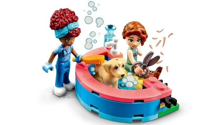 • Starání se o zvířata pro děti od 7 let – Inspirujte děti k přehrávání příběhů a starání se o zvířata se zábavnou stavebnicí LEGO® Friends Psí útulek (41727) • 3 minipanenky, 3 pejsci a doplňky – Ve stavebnici čekají postavy LEGO® Friends Autumn, Zaca a dr. Gabriely Silvové, a navíc figurky psů Pickla, Dashe a Grace a spousta doplňků • Upravte si model podle sebe – Děti mohou jednotlivé části psího útulku různě přeskupovat k obrazu svému, budou mít k dispozici recepci, ordinaci, koupelnu, překážkovou dráhu a pelíšky na spaní • Starejte se o pejsky s pomocí doplňků – Děti si zamilují používat doplňky k vymýšlení vlastních příběhů ze psího útulku. Mohou se těšit na hračky, váhu, léky, krmení, vodu, lupu, postel, kartáč a spoustu dalšího • Dáreček pro malé milovníky mazlíčků – Tato stavebnice LEGO® Friends představuje zábavný dárek k narozeninám, Vánocům nebo jen tak pro děti ve věku od 7 let, které by si rády postavily svůj vlastní psí útulek • Na míru mladým stavitelům – Model psího útulku měří přes 18 cm na výšku, 26 cm na šířku a 20 cm do hloubky • Praktický pomocník – Objevte intuitivní návod na stavění v aplikaci LEGO® Builder, kde děti mohou přibližovat a otáčet své modely ve 3D, sledovat postup a ukládat stavebnice. To jim pomůže v rozvoji nových dovedností • Nová generace v městečku Heartlake – V lednu 2023 se svět LEGO® Friends rozšířil o nové postavy a nová místa, aby poskytl ještě více inspirace pro vzrušující dobrodružství • Kvalitní produkt – Už od roku 1958 splňují všechny kostky LEGO® striktní oborové standardy, díky čemuž jsou konzistentní, kompatibilní a zaručují zábavné hraní • Bezpečnost nade vše – Kostky a dílky LEGO® Friends pouštíme na zem, zahříváme, drtíme, kroutíme a analyzujeme, abychom zajistili, že splňují striktní globální bezpečnostní standardy