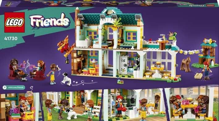 • Dům přátelství – Inspirujte děti od 7 let k vytváření vlastních příběhů o přátelství se stavebnicí Dům Autumn od LEGO® Friends (41730) • 4 minipanenky a doplňky – Stavebnice obsahuje postavy LEGO® Friends Autumn, Lea a Aliyu, a navíc maminku Miu, pejska Daisy a hříbě, a navíc spoustu doplňků pro kreativní zábavu • Ať dělají, co milují – Objevte doplňky inspirované zálibami kamarádů, včetně teleskopu, notebooku a dalekohledu, přísad na pečení, dýní, jablek, hrnků a krmení pro pejska Daisy • Prozkoumejte dům – Děti mohou postavit a prozkoumat všechny pokoje v domě Autumn, včetně kuchyně, obýváku, jídelny, koupelny, pokoje Autumn a balkónu • Dáreček pro děti, které si rády hrají s domečky – Tato stavebnice LEGO® Friends představuje zábavný dárek k narozeninám, Vánocům nebo jen tak pro děti ve věku od 7 let, které by si rády postavily dům LEGO Friends • Rozměry – Dům Autumn měří přes 23 cm na výšku, 30 cm na šířku a 9 cm do hloubky • Praktický pomocník – Objevte intuitivní návod na stavění v aplikaci LEGO® Builder, kde děti mohou přibližovat a otáčet své modely ve 3D, sledovat postup a ukládat stavebnice. To jim pomůže v rozvoji nových dovedností • Nová generace v městečku Heartlake – V lednu 2023 se svět LEGO® Friends rozšířil o nové postavy a nová místa, aby poskytl ještě více inspirace pro vzrušující dobrodružství • Kvalitní produkt – Už od roku 1958 splňují všechny kostky LEGO® striktní oborové standardy, díky čemuž jsou konzistentní, kompatibilní a zaručují zábavné hraní • Bezpečnost nade vše – Kostky a dílky LEGO® Friends pouštíme na zem, zahříváme, drtíme, kroutíme a analyzujeme, abychom zajistili, že splňují striktní globální bezpečnostní standardy
