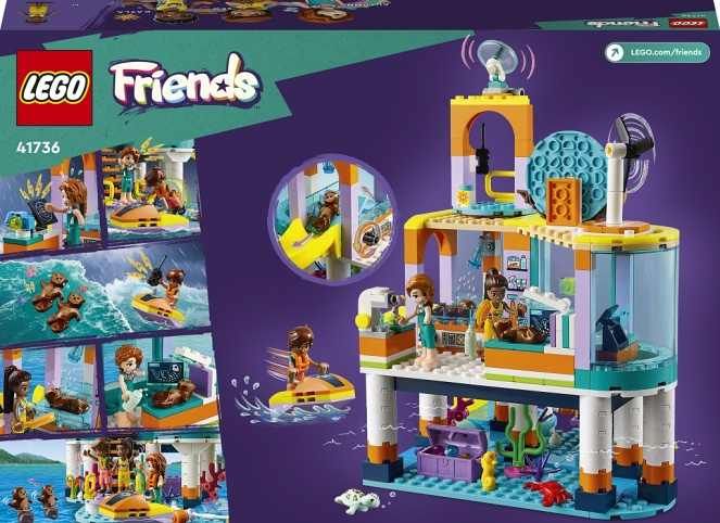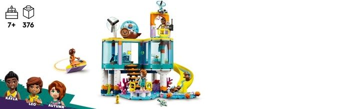 • Hraní příběhů z mořského světa pro děti od 7 let – Stavebnice LEGO® Friends Námořní záchranářské centrum (41736) je zábavný dárek pro milovníky zvířat • 3 minipanenky s doplňky – Stavebnice LEGO® Friends Námořní záchranářské centrum obsahuje postavu Autumn, Lea a Kaylu, 2 mořské vydry, mořského koníka a doplněk v podobě mořské želvy • Péče o zvířecí kamarády – Děti mohou vyprávět příběhy, zachraňovat mořské vydry a pečovat o ně. Ve stavebnici nechybí vodní skútr, skluzavka, rehabilitační areál a kousek oceánu • Doplňky inspirující ke hraní – Ve stavebnici najdete spoustu doplňků včetně záchranné vesty, kartáče, lahvičky na krmení, vysílačky, truhly s pokladem, fotoaparátu, mikroskopu, injekce a rentgenu • Dárek pro milovníky zvířat – Stavebnice Námořní záchranářské centrum je skvělým dárkem pro stavitele od 7 let, kteří mají rádi zvířata • Na míru mladým stavitelům – Model LEGO® Friends Námořní záchranářské centrum měří přes 23 cm na výšku, 20 cm na šířku a 19 cm do hloubky • Praktický pomocník – Objevte intuitivní návod v aplikaci LEGO® Builder, kde nadšení stavitelé mohou přibližovat a otáčet své modely ve 3D, sledovat postup a ukládat stavebnice. To jim pomůže v rozvoji nových dovedností • Nová generace v městečku Heartlake – V lednu 2023 se svět LEGO® Friends rozšířil o nové postavy a nová místa, aby poskytl ještě více inspirace pro vzrušující dobrodružství • Kvalitní produkt – Už od roku 1958 splňují všechny kostky LEGO® striktní oborové standardy, díky čemuž jsou konzistentní, kompatibilní a zaručují zábavné hraní • Bezpečnost nade vše – Kostky a dílky LEGO® Friends pouštíme na zem, zahříváme, drtíme, kroutíme a analyzujeme, abychom zajistili, že splňují striktní globální bezpečnostní standardy