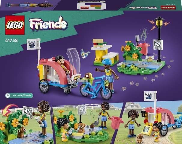 • Hraní se zvířátky pro děti od 6 let – Darujte milovníkům zvířat stavebnici LEGO® Friends Záchrana pejska na kole (41738), se kterou si budou stavět a přehrávat příběhy o hledání štěňátka • Stavebnice s příběhem – Obsahuje kolo s odpojitelným vozíkem, který lze otevřít, a model parku s lavičkou a křovím, pod kterým se může schovat štěňátko • Doplňky a spousta dalšího – Obsahuje minipanenky Aliye a Victorie, a navíc štěňátko a doplňky, včetně jídla a vody pro pejska, dalekohledu, helmy, kostičky, hovínka, odpadkového koše a plakátu • Kreativní hraní s kamarády – Zábavný dárek pro děti, který malým stavitelům umožní přehrávat si pátrání po štěňátku a následné starání o toulavého chlupáče • Drobné překvapení pro milovníky mazlíčků – Stavebnice LEGO® Friends s kolem a pejskem představuje zábavný dárek k narozeninám, Vánocům nebo jen tak pro hravé děti ve věku od 6 let • Parádní dárek – Kolo a vozík měří přes 8 cm na výšku, 14 cm na délku a 4 cm na šířku • Nový způsob stavění – Nechte se na svém stavitelském dobrodružství vést intuitivní aplikací s návodem LEGO® Builder. Ukládejte si stavebnice, sledujte svůj postup a přibližujte a otáčejte modely ve 3D, ať máte při stavění přehled • Nová generace v městečku Heartlake – V lednu 2023 se svět LEGO® Friends rozšířil o nové postavy a nová místa, aby poskytl ještě více inspirace pro vzrušující dobrodružství • Kvalita na prvním místě – Všechny dílky LEGO® splňují striktní oborové standardy, díky čemuž jsou konzistentní, kompatibilní a zaručují zábavné hraní • Bezpečnost nade vše – Kostky a dílky LEGO® Friends pouštíme na zem, zahříváme, drtíme, kroutíme a analyzujeme, abychom zajistili, že splňují striktní globální bezpečnostní standardy
