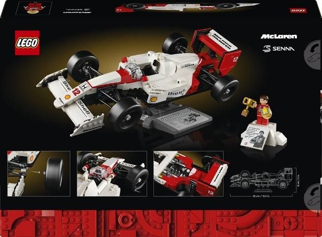 • Sběratelské závodní auto pro dospělé – Stavebnice LEGO® Icons McLaren MP4/4 a Ayrton Senna je určena pro fanoušky motorsportu a slavných vozidel• Co najdete v krabici? – Součástí této kreativní stavebnice je vše, co potřebujete k sestavení modelu vozu McLaren MP4/4 a podstavce na vystavení modelu závodního auta a minifigurky Ayrtona Senny• Detaily a funkce – Součástí této stavebnice z řady LEGO® Icons je funkční řízení, spojovací tyč, zadní křídlo, hladké pneumatiky, zrcátka, řadicí páka a propracovaný turbomotor V6• Dekorace domů nebo do kanceláře – Nechybí podstavec na vystavení modelu McLaren MP4/4 s tištěnými statistikami o vozu a podstavec pro minifigurku Ayrtona Senny s fotografií a slavným citátem tohoto jezdce• Tip na dárek promilovníky vozidel – Stavebnice LEGO® Icons McLaren MP4/4 a Ayrton Senna představuje skvělý dárek k Vánocům nebo narozeninám pro dospělé• Obsahuje digitální návod na stavění – Aplikace LEGO® Builder přináší digitální verzi návodu na stavění, který je so učástí této stavebnice LEGO Icons• Relaxační projekty LEGO® pro dospělé – Tato stavebnice LEGO Icons je součástí řady pokročilých modelů navržených pro dospělé• Rozměry – Tato stavebnice LEGO® se skládá z 693 dílků a model závodního auta McLaren MP4/4 měří přes 12 cm na výšku, 32 cm na délku a 17 cm na šířku