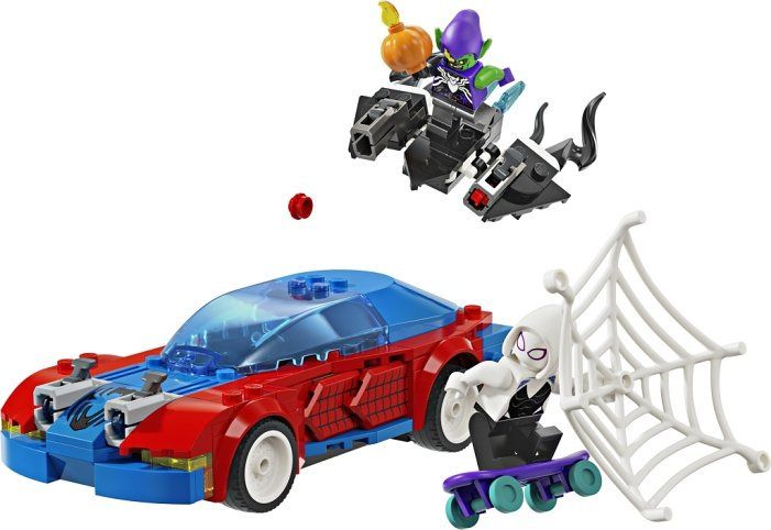 • Spider-Manovo auto pro děti – Spider-Manovo závodní auto a Venom Zelený goblin z kostek LEGO® představuje sestavitelnou akční superhrdinskou hračku na kolech i ve vzduchu pro děti od 7 let • Stavitelský a herní akční zážitek – Součástí stavebnice pro děti je sestavitelné auto, zbraně, doplňky a minifigurky hrdinů LEGO® Marvel Spider-Mana a Ghost-Spider a padoucha Venoma Zeleného goblina • Superhrdinské akční bitvy na kolech z kostek LEGO® – Spider-Manovo auto má 2 přední vystřelovače, Zelený goblin se pyšní 2 vystřelovači na kluzáku a Ghost-Spider při jízdě na skateboardu používá 2 ruční vystřelovače pavučin • Stavebnice stvořené pro hraní rolí – Součástí sady je řada prvků podněcujících hraní, jako je otevírací kokpit auta, dýňová bomba, ohebné pavučinové „lano“ a velká ohebná pavučina, kterou lze omotat kolem minifigurek • Tip na dárek pro děti – Fanoušci hrdinů od Marvelu, Spider-Mana, Ghost-Spider a Zeleného goblina si s touto stavebnicí užijí nekonečnou porci kreativního hraní • 3D průvodce stavěním – Děti si mohou stáhnout aplikaci LEGO® Builder a vychutnat si pohlcující stavitelský zážitek s digitálními funkcemi přibližování a otáčení modelů ve 3D a možností ukládání stavebnic a zobrazení postupu ve stavění • Sady LEGO® Marvel – Rozsáhlá řada stavebnic LEGO® Marvel přináší neomezené možnosti tvůrčího hraní a stavění • 227 dílků – Sestavitelné Spider-Manovo auto měří přes 4 cm na výšku, 14 cm na délku a 7 cm na šířku