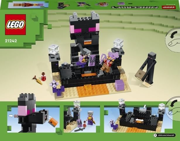 • Kultovní lokace – Aréna v Endu (21242) od LEGO® Minecraft® přináší neomezené akční možnosti vzájemných soubojů hráčů Minecraftu • Klasické postavy – Součástí jsou figurky z říše Minecraft®: bojovník z Endu, dračí lukostřelec, enderman a shulker • Akce ve stylu LEGO® Minecraft® – Hráči se utkají v aréně, zatímco na ně padá láva seshora a zároveň se jim odkrývá lávové jezírko pod nohama • Dárek pro příznivce Minecraftu – Tato tvůrčí stavebnice je vhodná jako narozeninový, vánoční nebo jakýkoli jiný dárek pro hráče Minecraftu od 8 let • Zábava neberoucí konce – Aréna v Endu od LEGO® Minecraft® měří přes 13 cm na výšku, 17 cm na šířku a 13 cm do hloubky a lze ji snadno kombinovat s ostatními stavebnicemi z téže řady • Interaktivní digitální stavění – Aplikace LEGO® Builder s návody na stavění potěší intuitivními nástroji přibližování a otáčení, které dětem umožní vizualizovat si model, zatímco na něm pracují • Minecraft® v reálném světě – Stavebnice LEGO® Minecraft dávají dětem možnost novým kreativním způsobem prožívat oblíbenou hru a postavit si z kostek LEGO známe lokace, předměty a protivníky • Záruka kvality – Dílky LEGO® splňují striktní oborové standardy kvality, což znamená, že jsou konzistentní a kompatibilní a umožňují hladké spojování • Záruka bezpečnosti – Dílky LEGO® pouštíme na zem, zahříváme, drtíme, kroutíme a analyzujeme, abychom zajistili, že splňují náročné globální bezpečnostní standardy