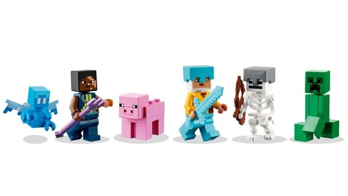 • Model diamantového meče – Stavebnice Rytířská základna (21244) od LEGO® Minecraft® inspiruje k dobrodružství prostřednictvím zvětšené repliky nejcennější zbraně ve hře • Autentické detaily – Čekají na vás strážný voják, strážný bojovník, allay, kostlivec, Creeper™ a prase. Mezi dobře známé prvky ze hry Minecraft® patří Jukebox, ve kterém si děti mohou „přehrát“ desku • Klasická akce – Děti si postaví základnu, kde si mohou odpočinout za poslechu hudby a pochutnat si na sušence, utkat se s výbojnými moby a aktivovat explozi, která způsobí zřícení části budovy • Zábavný dárek – Hráči od 8 let zapojí své kreativní dovednosti ze hry Minecraft® a postaví si úkryt, který skýtá neomezené možnosti hraní a vystavování • Nepřeberné herní možnosti – Stavebnice měří přes 21 cm na výšku, 25 cm na šířku a 11 cm do hloubky a lze ji kombinovat s ostatními modely z této řady pro ještě více dobrodružství ve světě Minecraft® • Interaktivní digitální stavění – Aplikace LEGO® Builder s návody na stavění potěší intuitivními nástroji přibližování a otáčení, které dětem umožní vizualizovat si model, zatímco na něm pracují • Minecraft® v reálném světě – Stavebnice LEGO® Minecraft dávají dětem možnost novým kreativním způsobem prožívat oblíbenou hru a postavit si z kostek LEGO známe lokace, předměty a protivníky • Záruka kvality – Dílky LEGO® splňují striktní oborové standardy kvality, což znamená, že jsou konzistentní a kompatibilní a umožňují hladké spojování • Záruka bezpečnosti – Dílky LEGO® pouštíme na zem, zahříváme, drtíme, kroutíme a analyzujeme, abychom zajistili, že splňují náročné globální bezpečnostní standardy
