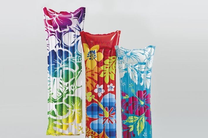 Nafukovací matrace s barevným potiskem o velikosti 183 x 69 cm. Velice odolný materiál vinyl. Dvě nafukovací komory. Komfortní nafukovací podhlavník.