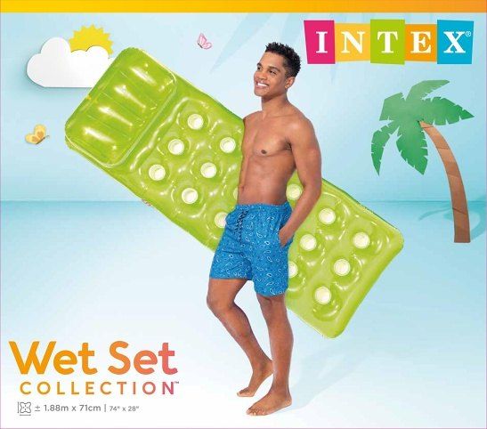 S opalovacím nafukovacím lehátkem na vodu s podhlavníkem si skvěle užijete horké letní dny v bazénu i na moři. Lehátko má 2 vzduchové komory a nafukovací polštář pod hlavou. Příjemnému lenošení na vodní hladině tak nic nebrání! Součástí balení je opravná sada. Vyrobeno z kvalitního vinylu (0,28 mm). Maximální nosnost 100 kg.