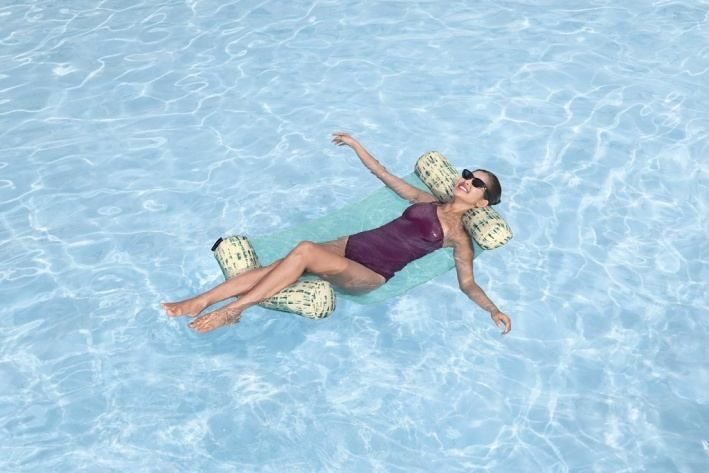 Lehátko síťové Everluxe™ Hammock představuje inovativní a multifunkční produkt určený pro relaxaci ve vodě i mimo ni. Jeho konstrukce nabízí čtyři různé způsoby použití – lze jej využít jako lehátko, sedátko do vody, hamaku nebo sedlové sedátko. Tato univerzálnost poskytuje uživatelům širokou škálu možností, jak si užít pohodlný odpočinek například u bazénu, na zahradě nebo na pláži. Lehátko je vyrobeno z rychleschnoucí, hladké a pružné tkaniny s ochranou proti UV záření, což zajišťuje jeho odolnost vůči poškození slunečním světlem a zároveň příjemný chladivý efekt během používání. Síťovina ComfortCool™ přispívá k pohodlí díky své měkkosti a schopnosti odvádět teplo, což oceníte zejména v horkých dnech. Boční válečky jsou vyplněny lehkou pěnou, která zaručuje dostatečnou plovatelnost a stabilitu na vodě, přičemž jejich design s jemným vzorem v tyrkysovo-béžových tónech dodává lehátku estetický vzhled. Praktickou vlastností je nastavitelný ramenní popruh, který umožňuje snadné složení a přenášení lehátka. Kompaktní rozměry 122 × 65 × 15 cm zajišťují, že produkt nezabere mnoho místa při uskladnění či transportu. Maximální nosnost je 100 kg, což umožňuje pohodlné využití většinou dospělých uživatelů. Celkově je lehátko Everluxe™ Hammock ideální volbou pro milovníky aktivního odpočinku ve vodě i na souši, kteří hledají kombinaci komfortu, funkčnosti a moderního designu.