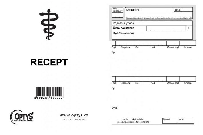 Lékařský recept, A6, 50 listů, OPTYS 1200