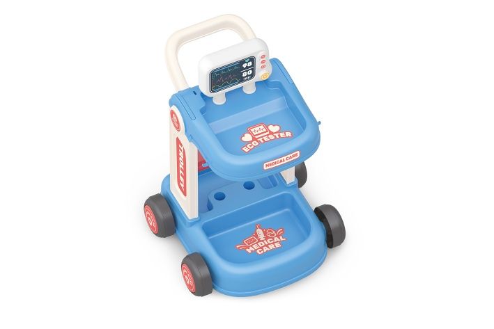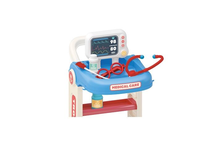 Lékařský vozík. Rozměry 34x36x37 cm. Vozík s kolečky, lékařským vybavením a příslušenstvím.