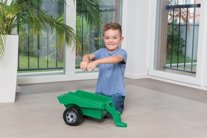 Přídavný vozík za Maxi auta. Lze připojit za: 02055, 02057, 02080, 02081, 02122, 02123, 02016, 02062, 02160, 02060 (Traktor, Bagr s plastovými koly, Sklápěč 2 osý).