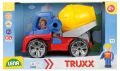 Truxx domíchávač z kvalitního plastu a velmi pevnou stavbou. Plně mechanicky funkční. Obsahuje pojistku proti nežádoucímu vyklopení, odklopitelnou kabinu s aktivním panáčkem.Baleno v okrasném kartónu