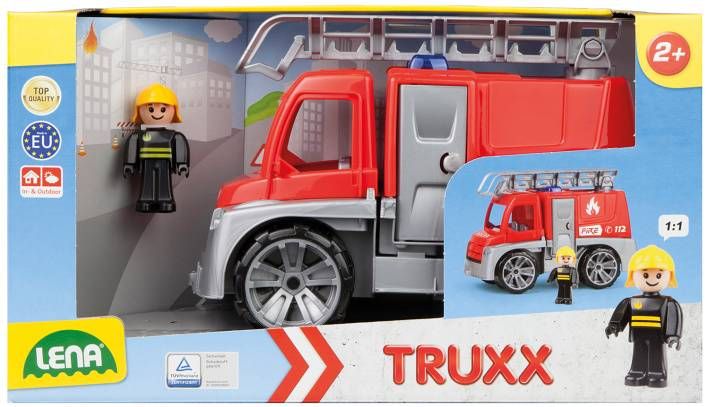Truxx auto hasič z kvalitního plastu a velmi pevnou stavbou. Plně mechanicky funkční. Součástí dvoje otevíravé dveře, odklopitelná kabina s aktivním panáčkem hasičem.