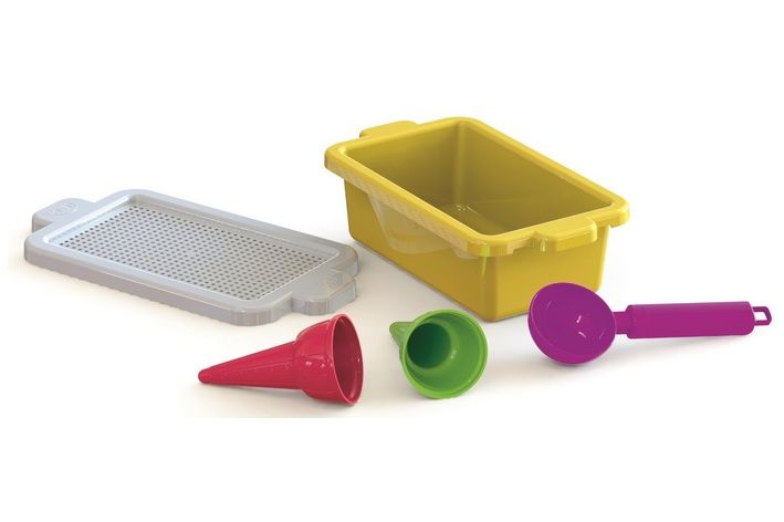 Balení obsahuje: box, víčko (sítko), 2 kornoutky (11 cm) a naběračku (18 cm).