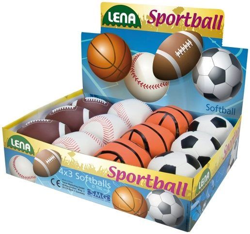 Měkký soft míček o velikosti 10 cm. 4 druhy sportu (fussball, basketball, rugby, baseball). Cena je za jeden míček.