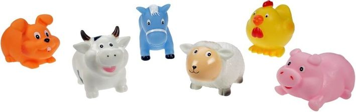 Gumová stříkací zvířátka: králíček, oslík, prasátko, kravička, ovečka, kuřátko. Cena za jeden kus