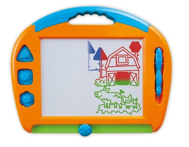 Plastová magická tabulka. Obsahuje tužku s kovovým hrotem, 3x razítko. Jednouché zacházení.