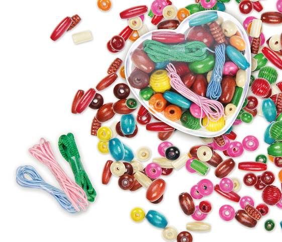 Dřevěné korálky různách barev a tvarů o velikosti 9,5mm.