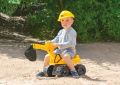 Robustní bagr s velkou plochou pro sezení, 6mm hrubé kovové osky kol. Moderní detailní design. S ramenem je možno kopat do hloubky až 20cm. Otočný podvozek o 360 stupňů. Součástí pojistka k zajištění otáčení. Ovládání bagrovacího ramene pomocí dvou praktických držadel.
