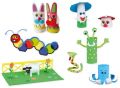 Kufřík pro malé kutily obsahuje průhlednou fólii, průhledný papír, barevnou vlnitou lepenku, plsť, fleece, samolepicí kamínky, pěnové pryžové díly, barevné kolíčky na prádlo, tyčinky na zmrzlinu, peříčka, krepový pásek, knoflíky a mnoho dalšího. 1300ks v balení