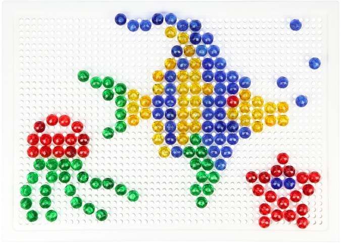 260 kusů transparentních kloboučků o velikosti 10mm balených v plátěném pytlíčku. Velikost děrované desky 28x19,5cm