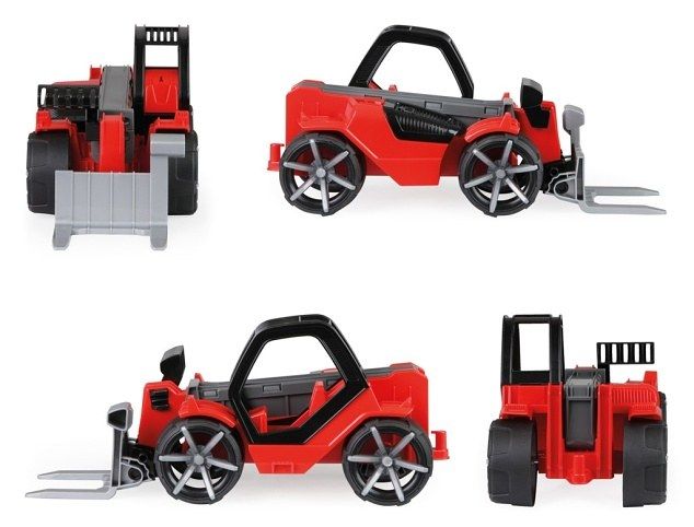 Truxx 2 nakladač z kvalitního plastu a velmi pevnou stavbou. Plně  mechanicky funkční. Obsahuje odklopitelnou kabinu s aktivním panáčkem.  Pogumovaná kola s tichým chodem