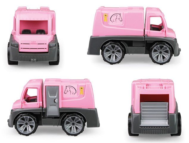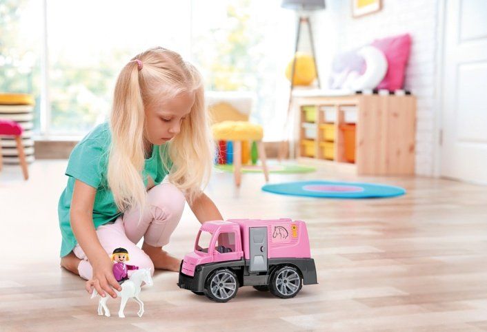 Truxx auto koňský transport z kvalitního plastu a velmi pevnou stavbou. Plně mechanicky funkční. Součástí dvoje otevíravé dveře, odklopitelná kabina s aktivním panáčkem jezdcem, kůň.