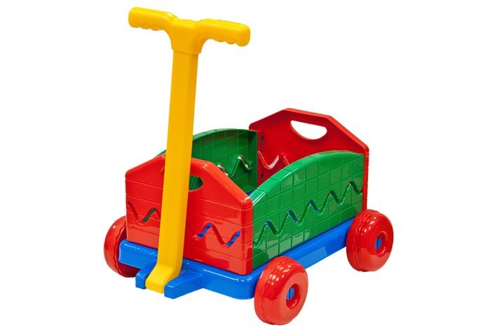 Tahací vozík s ojí na hraní doma i venku. Vozík je rozkládací. Rozměr 40x32x20 cm. Vhodné od 2 let.