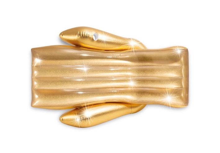 Nafukovací lenoška s třpytkami o velikosti 1,75 m x 1,19 m x 61 cm.