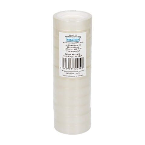 Lepící páska 12 mm x 20y m transparentní, balení obsahuje 12 ks.