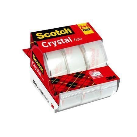 Lepicí páska s odvíječem "Crystal", 2+1 zdarma, 19 mm x 7,5 m, 3M SCOTCH