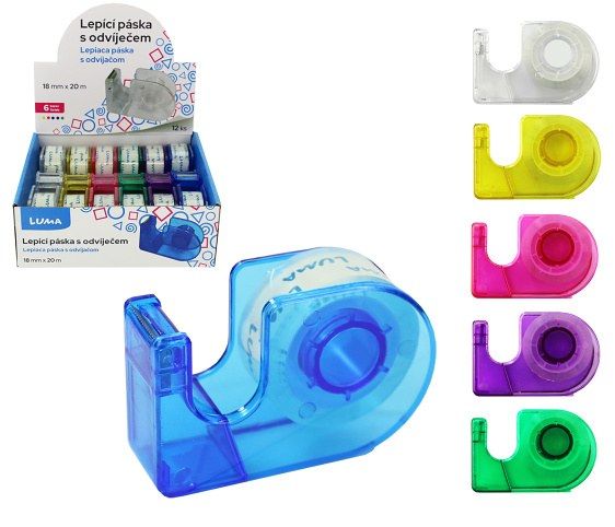 Lepící páska transparentní + odvíječ 18mm x 20m LUMA mix