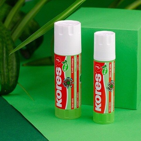 Lepicí tyčinka Kores EKO je 95% lepicí hmota z přírodních materiálů, 85% z recyklovaného materiálu. Obsahuje glycerin pro jemné lepení.Lepí na všechny druhy papíru, trvale zasychá.