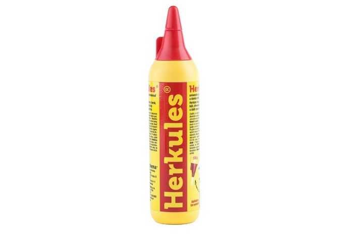 Herkules 130g+lt;br+gt; - lepidlo na papír+lt;br+gt; - Herkules lepí papír, dřevo, korek, kůži, dřevovláknité materiály a další savé materiály.+lt;br+gt; - Zvláště je vhodný na lepení fotografií, slepování dřevěného nábytku, kožených výstelek obuvi, apod.+lt;br+gt; - Lepidlo je velmi vhodné pro modeláře.+lt;br+gt; - obsah 130g