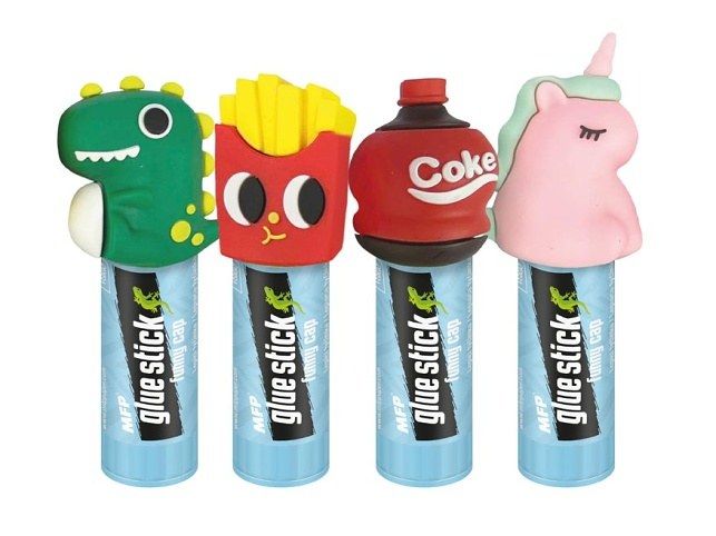 Tuhé lepidlo funny cap je lepidlo v tyčince, které má navíc zábavný a originální design víčka. Praktické balení v tyčince umožňuje snadné a čisté nanášení lepidla, což ocení zejména děti při svých školních projektech a tvořivých aktivitách. Lepí papír, karton, fotografie, korek. Lepidlo se vysouvá z plastového pouzdra pootočením spodního dílu. Lepidlo je snadno vypratelné a omyvatelné vlažnou vodou. Neobsahuje toxické a škodlivé látky. Hmotnost: 9 g Velkoobchodní balení je po 12 ks v praktické papírové krabičce. Uvedená cena je za 1 ks.