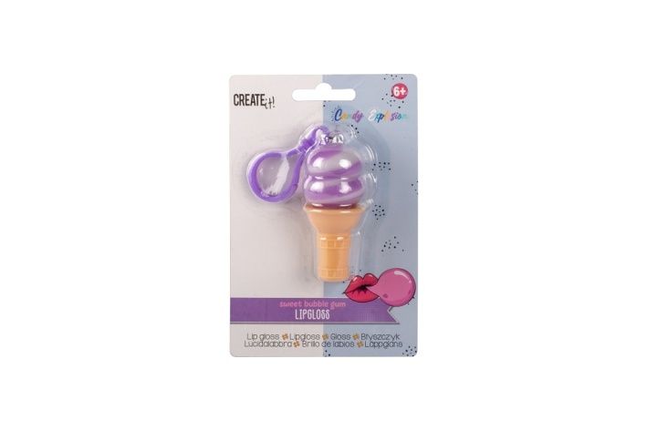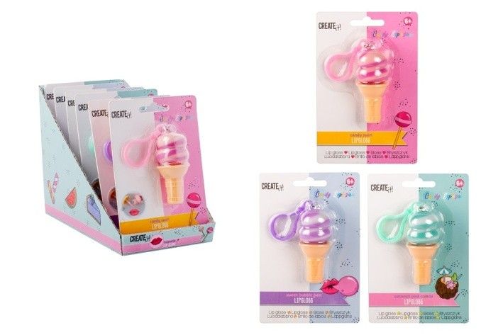 Lesk na rty Candy ve tvaru kornoutku se zrmrzlinou je zároveň přívěsek. Tři různá barevná provedení – tři příchutě.