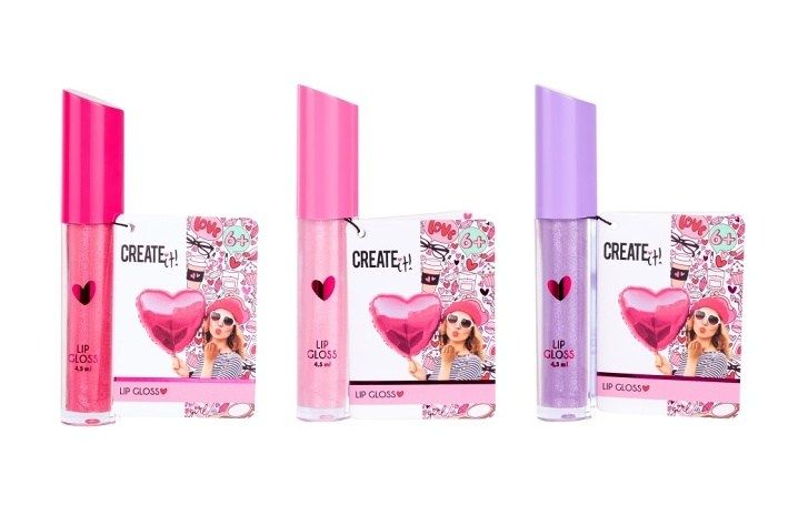 Lesk na rty Creat it! Heart – tři různé lesky na rty – tmavě růžový, fialový a světle růžový.