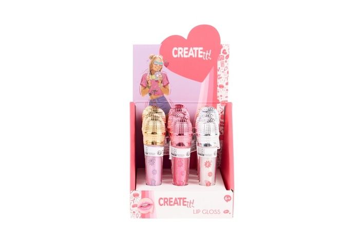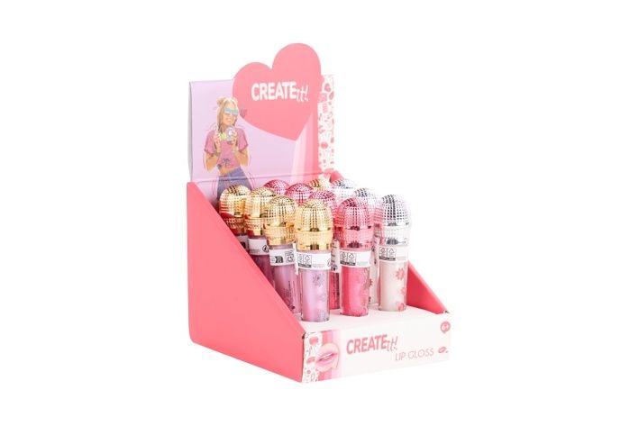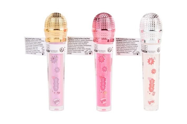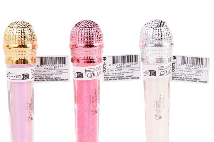 Lesk na rty ve tvaru mikrofonu.tylový lesk na rty ukrytý v originálním obalu ve tvaru mikrofonu. Poskytuje jemný lesk a příjemnou péči pro rty, ideální pro malé fanoušky make-upu a zpěvu. Ve třech barvách růžovo/zlatý, růžovo/stříbrný a růžovo/růžový.