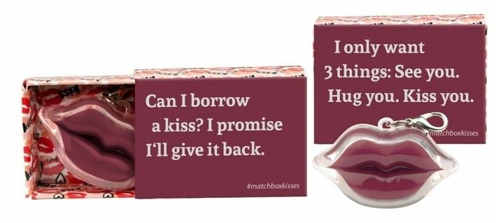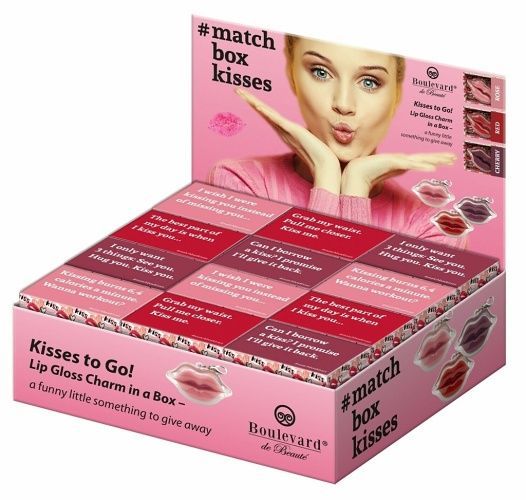 Lesk na rty ve tvaru rtů s přívěskem. Ve třech barevných provedeních.